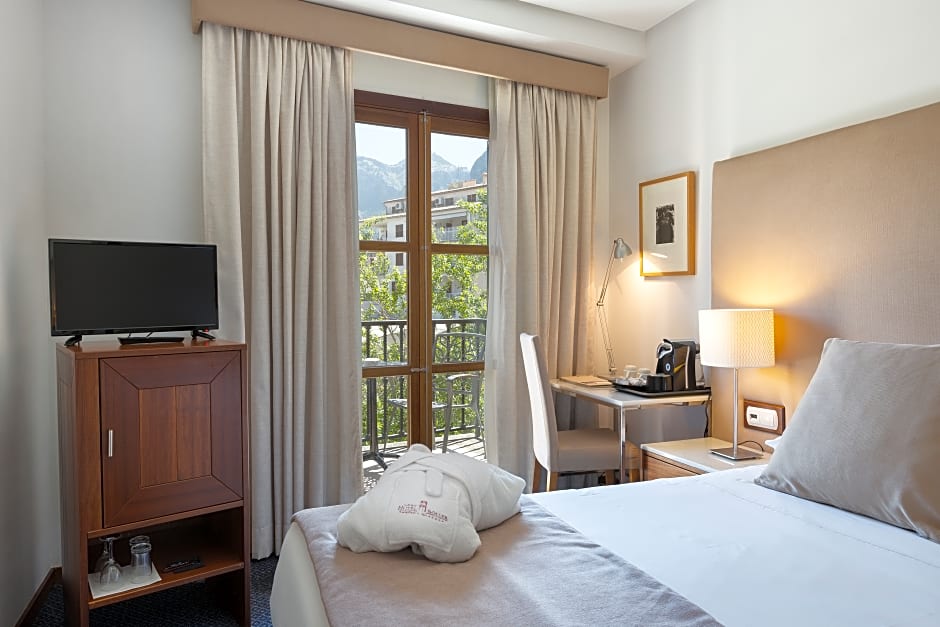 Rooms feature balconies, soundproofing, and options with mountain, garden, or river views, along with Non-smoking rooms and upper-floor access via Elevator. Terrace and garden views complete the ambience, offering a traveler-friendly base to explore Sóller’s charms.